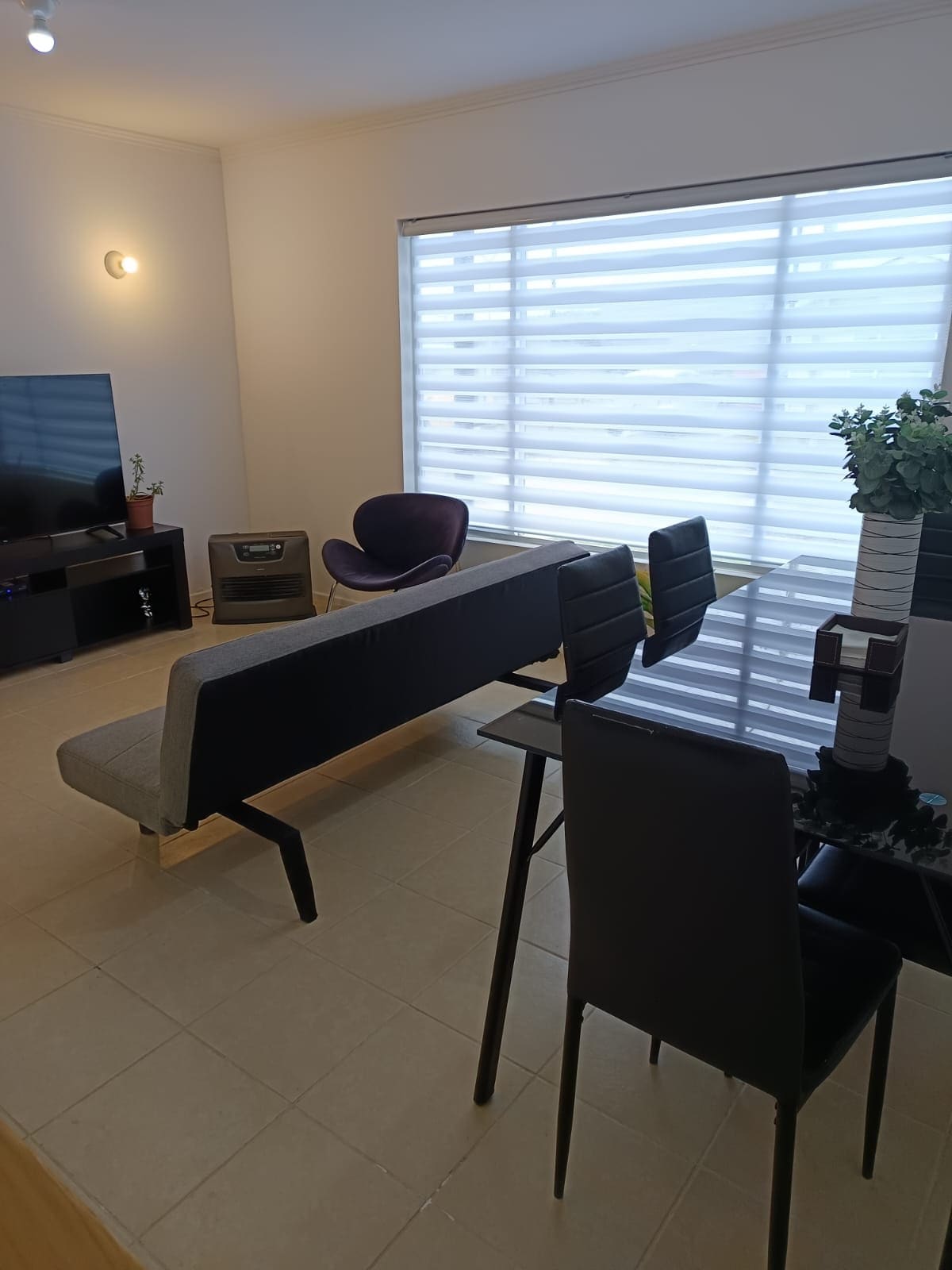 Es un pequeño departamento, muy acogedor y tranquilo para los viajeros de paso por nuestra maravillosa región, cercano a varios negocios locales e incluso a un Cesfam en caso de emergencia, con locomoción alrededor y a una distancia prudente del centro de la ciudad para la persona que deseé caminar, en caso contrario, locomoción pasa al frente del establecimiento. El departamento está equipado con todo lo necesario para su estadía.