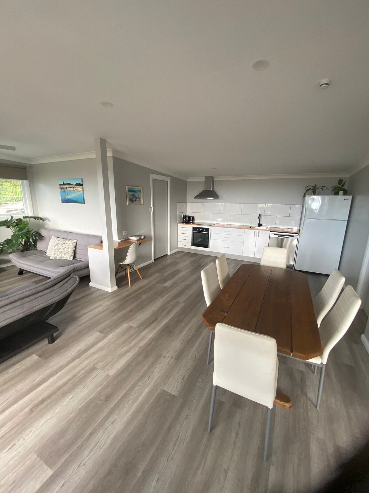 The perfect couples getaway. Large studio, private deck with garden views. Modern bathroom and European style kitchenette with dishwasher, washer and dryer. Short walk to back beach. Pets welcome. Please note we live next door in the main house and our dogs (GSD and Chihuahua) will bark occasionally. Neighbours also have dogs that sometimes bark. If you hate dogs, please book elsewhere. Please read policies and rules before booking with a pet. Note: you will hear some noise from the main house