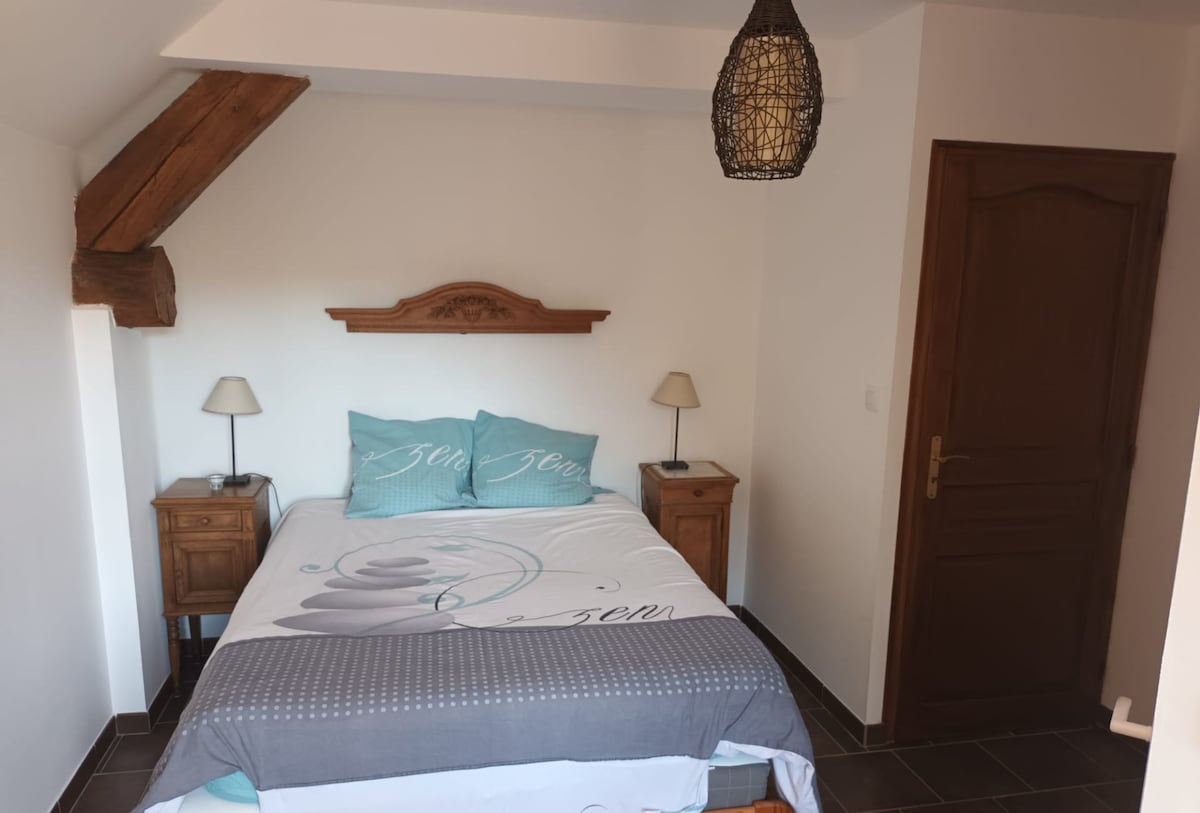 Large guest room located on the first floor of the manor. Restored with respect for the work of the elders with period furniture. Modern comforts are however available with a large screen, Wi-Fi and the necessary amenities to make a hot drink (espresso coffee maker, kettle). Private bathroom and toilet.