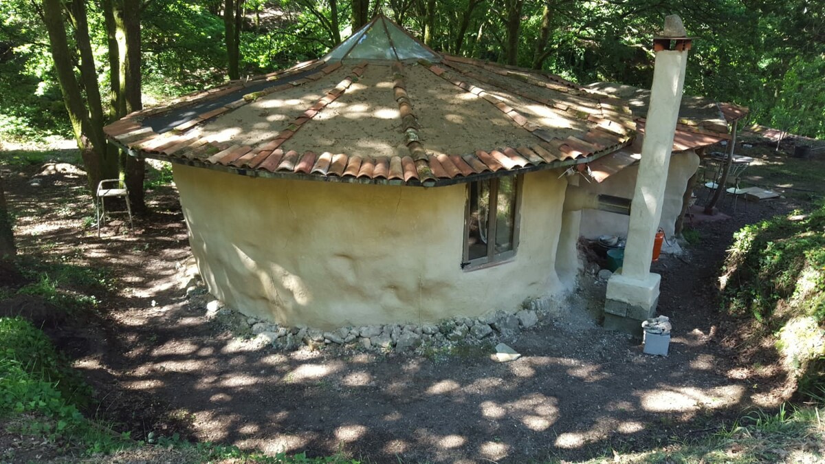 A round stohbale building with attached bathroom and kitchen in the middle of the forrest. Just next to the river with pools to bath/swim. Una casa domo independiente con baño y cocina , situado en el bosque a 100metros del río con pozas para bañar .