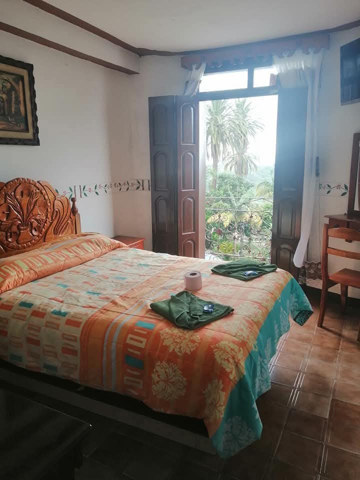 Disfruta de la sencillez de este alojamiento tranquilo y céntrico. Está habitación ofrece una estancia privilegiada ya que es la única que cuenta con dos balcones y ofrece una vista privilegiada a la Iglesia Patronal de Jonotla, Puebla.