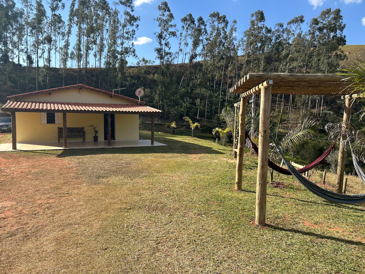 'Casinha,' affectionately called by us. Comfortable country house without losing its originality. Surrounded by nature with a lovely view of a mountain valley and the sound of a small stream in the background. You can enjoy the fireplace, wood-burning stove and a charming balcony frequented by hummingbirds. The lawn surrounding the house is perfect for sunbathing, enjoying the starry sky, having lunches integrated with nature or simply relaxing on the sun loungers.
