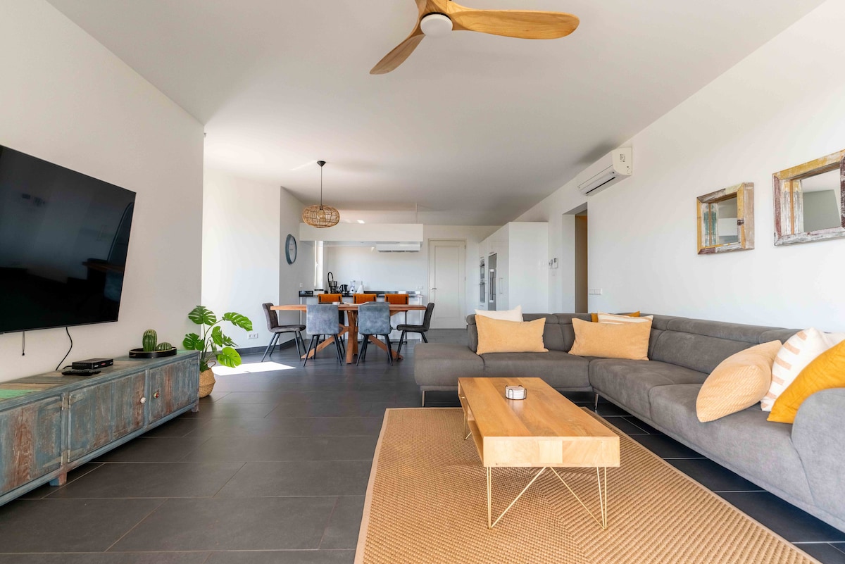 Wake up to the sound of the sea and end your day with a golden Caribbean sunset - all from your private Ocean-front terrace. This spacious 3-bedroom, 3.5 bath apartment in Penstraat offers the perfect mix of tranquility and convenience: Relax at this gorgeous and peaceful place to stay. Private Beach at a beautiful little Bay, swimming pool in a tropical garden, privacy at your spacious terrace with a gorgeous view, located at walking distance from very nice restaurants and the center of town