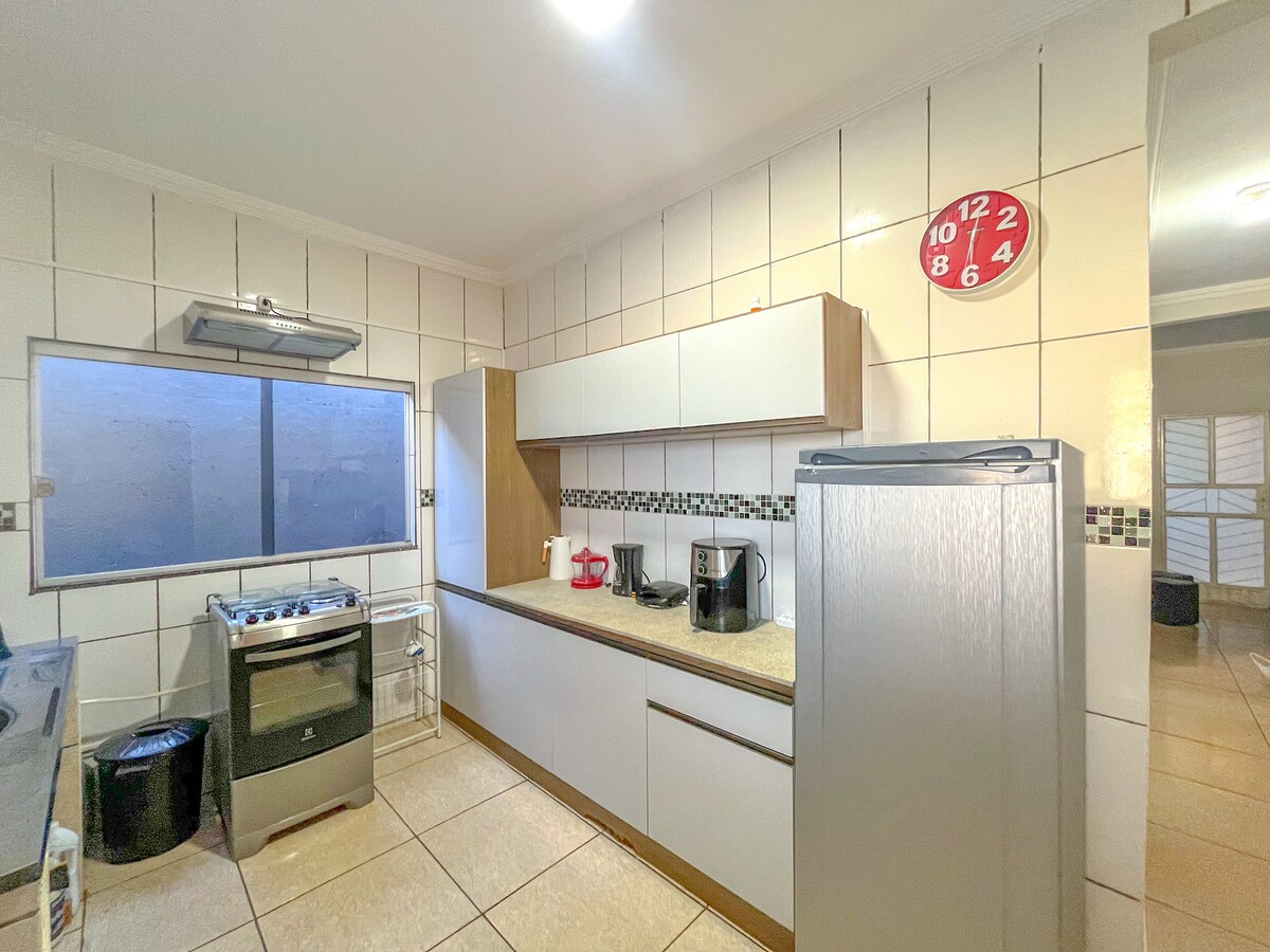 Ambiente aconchegante, organizado e perfeito para até 2 pessoas que buscam tranquilidade e praticidade. O espaço é simples, confortável e oferece privacidade para uma estadia agradável, seja para descanso ou passagem rápida pela cidade. 🍳 Importante: A cozinha está localizada na área externa da casa. Por ser um ambiente aberto, é natural que possa haver poeira e, em dias de vento ou chuva, respingos trazidos pelo vento.