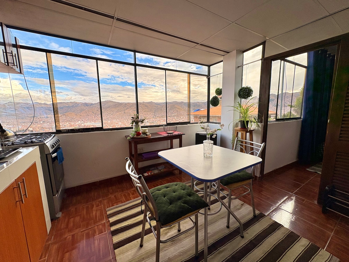 The Best View Apartment is the perfect spot for those who loves great views; the most beautiful views over downtown Cusco and the entire valley of the city are reachable from any window of the apartment: the big window of the living room and the 2 windows of the bedroom. There is a rooftop terrace from where you have a 360 degree view. The apartment has high speed wi-fi, ideal for those coming for work/business reasons. Netflix-tv, heater, and a king-size bed make this place unique.