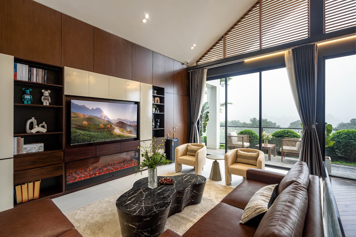 Relax with the whole family in this peaceful hillside accommodation, with classic interior style, flower-filled gardens; watch the sunset and sunrise over the sloping mountains around the house, along with fun BBQ and karaoke evenings. The house is in the center of the commune, near the market, grocery stores, churches, pagodas, etc., giving you access to all other necessary services (you can borrow the staff's motorbike to go for a short time)