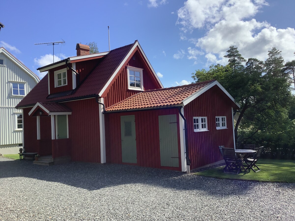 Lillstugan is located on a farm where there are cows, chickens, cats and dogs. The beds are made and there is breakfast in the fridge when you arrive. Lillstugan has 3 beds on the ground floor and 3 on the second floor. Kitchen has dishwasher, microwave, fridge/freezer, electric stove with oven and wood stove. TV room with sofa. Small patio with garden furniture and grill. Balcony with seating. There are roads and trails in the forest where you can walk or bike. It is 300 meters to a private beach with a jetty.