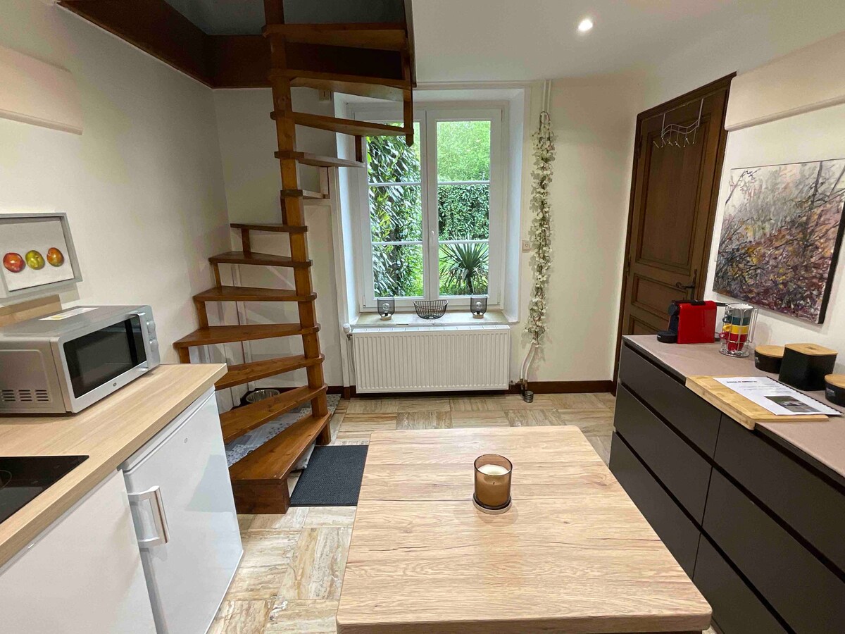 magnifique T2, lumineux, refait à neuf 3 ème étage d'un immeuble ancien, situé à 3 min à pied de la place Ducale et à 100m du cinéma. Il comprend: une pièce à vivre avec salon climatisé (canapé convertible), une table basse, TV, une gde cuisine équipée avec frigo, plaque, combiné four micro-ondes, une sdb avec douche, lavabo et WC et une entrée. u e petite chambre lit double, avec commode et penderie, coin bureau. possibilité de stationner à proximité. 15min à pied de la gare et à 2 min des bus.