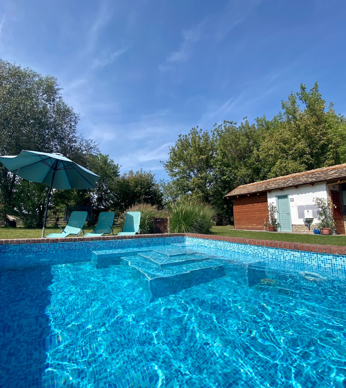Western Ranch – wellness, pool and tranquility Do you want to relax with your family or party with friends? All this is possible on our western Ranch, which has been operating for 25 years! 6 air-conditioned rooms for 12 people, with private bathrooms, shared kitchen, fireplace and seasonal pool. Wellness area (jacuzzi, sauna, salt room) is also waiting! Ideal for team building, birthdays, bachelorette or bachelor parties, or a quiet country getaway.