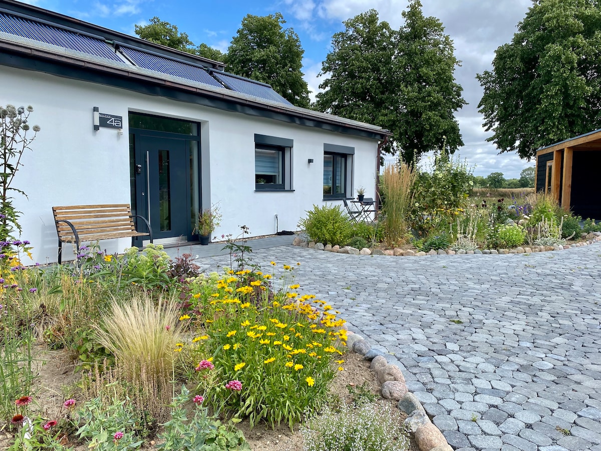 Welcome to our cottage on the Elbe dyke! Our house and the detached guest house were built in 2021. The guest house is very cozy and stylish with many details, such as furniture, windows, etc., which have been designed and built in individual production and with a lot of love for detail. If you are looking for peace and relaxation in a stylishly furnished ambience, this is the place to be. The Elbe Cycle Path and Elbe Dike are about 200 meters from us.