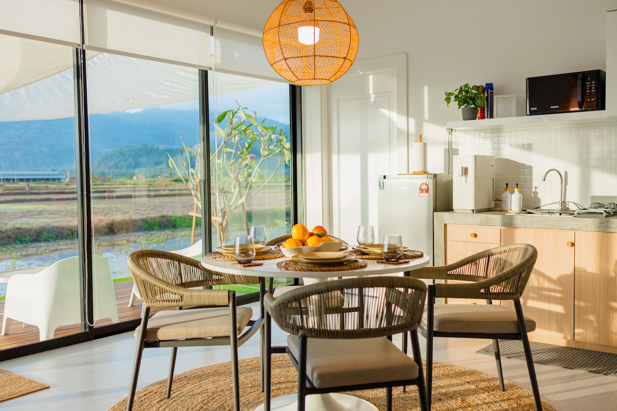 Ulu Sepi is a peaceful tropical villa with 2 bedrooms (1 king + 2 single beds), ideal for couples or families of 4. Enjoy a private infinity pool facing wide paddy fields, open-air living, and minimalist design inspired by nature. Thoughtfully crafted for relaxation, the villa features seamless indoor-outdoor flow, raw finishes, shaded spaces, and calming views—perfect for those seeking comfort, style, and serenity in Langkawi’s lush countryside.
