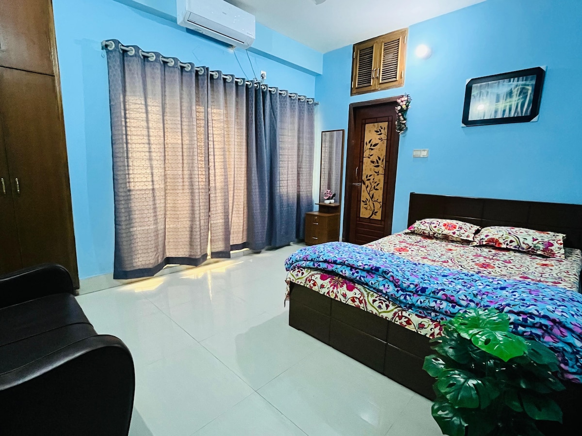 Facilities You’ll Enjoy During Your Stay: #2 Air-Conditioned Bedrooms #2 Bathrooms (1 attached + 1 common) #WiFi Connected with TV #Dining Table #Spacious Wardrobe #Sofa Set #Kitchen with Basic Cooking Utensils #Oven and Fridge #Secure Parking Space # No Lift ⚠️** Please Note: **⚠️ 💠Family and married couples only. All the guests must provide a copy of their NID or passport. 💠Any Drugs, Alcohol, Smoking and illegal activities are not allowed. 🚫