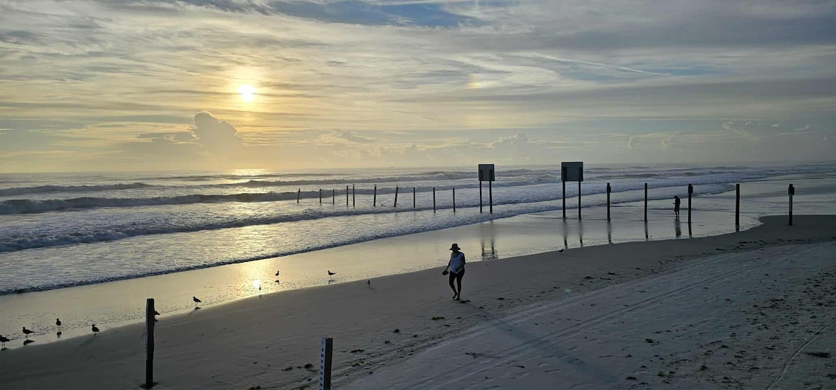 We are one of the closest airbnb to the boardwalk, OnThe Worlds Most Famous Beach with an open Pool 65inch Tv Come enjoy our Newly Furnished Studio with Amazing Top Floor Beach Views. We are the Closest AIRBNB on the Beach to the Daytona International Speedway With king bed and Queen sleeper sofa. Centrally located in the Heart of Daytona Beach. walking distance to the Pier Boardwalk, Restaraunts, and Main Street We have FREE parking for 1 vehicle and provide Coffee,Cream,Sugar,bch chairs