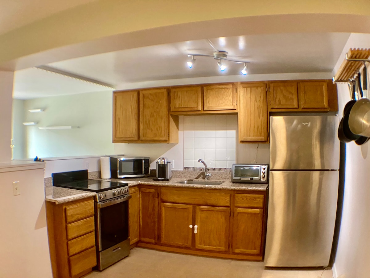 Situate yourself in our cozy Golden Gate Park apartment and explore San Francisco's natural beauty, local restaurants, and world-class museums. This one-bedroom has a private entrance and well-appointed rooms, with Hulu / DisneyTV, a gym-quality elliptical and secure WiFi. There is a living area with comfy chairs and ample desk space, plus a dining table and chairs for sharing simple meals. The unit is suitable for a couple, a couple with a small child or solo traveler.
