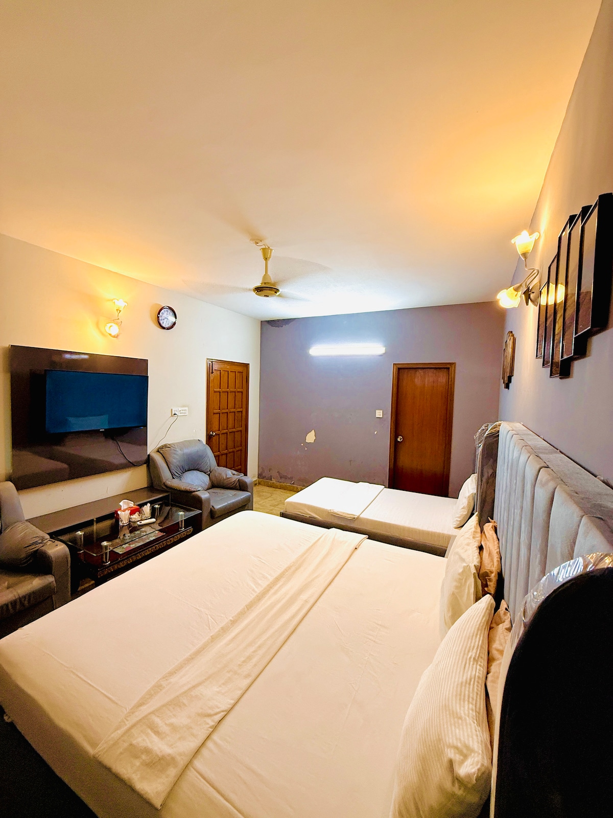 Indulge in the ultimate Karachi culinary retreat at our 2-bedroom, 3-bathroom suite. Our stylish apartment offers a serene escape where you can relax and recharge while savoring the best of Karachi's vibrant food scene. The acclaimed Chef's Table is practically on your doorstep, and you'll be within easy reach of other top-rated restaurants like Cafe Aylanto, Shaheen Shinwari, and the popular seaside dining at Do Darya's Kolachi. A world of flavors awaits! Book your "Savory Stay" today!