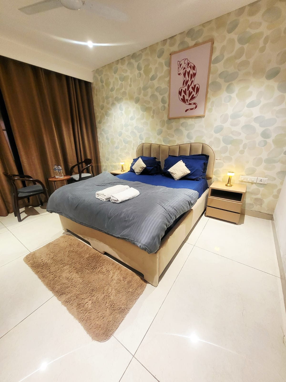 Gurgaon's favourite couple retreat at Sapphire 83. Order custom cakes, flower bouquets, room décor and photography directly through our guest portal. Enjoy stylish living area with books & games, fully loaded kitchen, beautiful bedroom with TV/OTT. Work or relax with a dedicated workstation & 200+ Mbps WiFi. Step onto open-view balcony for skyline views. Strategic location near NH48, Dwarka Exp, SPR, Amex, Air India, TCS. Inox, pubs, restaurants and mall level convenience are steps away.
