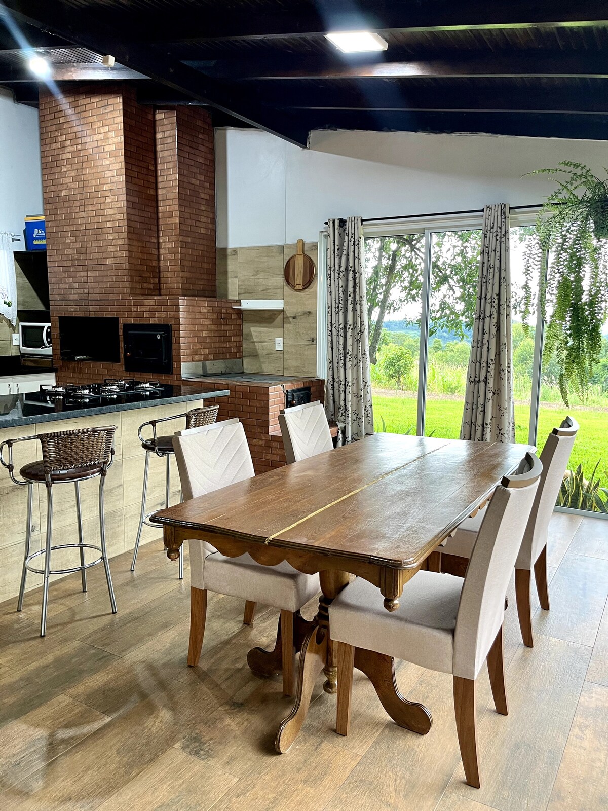 • Chalé c/2 quartos, todo equipado, climatizado, TV e Sinal de Internet. • Quiosque com Churrasqueira, fogão a lenha e todos os utensílios. • Quiosque e Deck próximo ao rio. • Escada de concreto até as águas do rio peperi guaçú. • Quando o rio está em nível normal permite andar de caiaque, relaxar nas águas cristalinas. • Pomar orgânico onde os hospedes podem colher as frutas frescas do pé. • Amplo espaço de natureza e trilhas. momentos inesquecíveis neste lugar único e ideal para famílias.