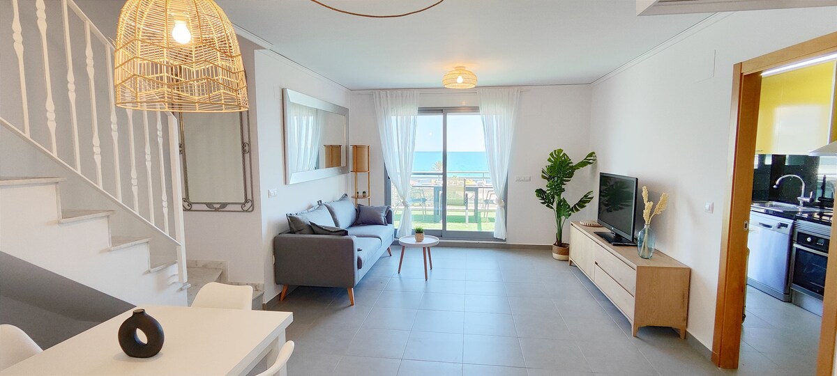 ¡No te imaginas lo increíble que es este apartamento! Está en primerísima línea de playa, con unas vistas frontales al mar que te dejarán sin aliento. Está ubicado en una urbanización llamada Jardines de Deveses, que es una pasada. El apartamento tiene 3 habitaciones dobles y 2 baños, así que hay espacio de sobra para tus amigos o familia. La terraza es grande y con toldo, desde ella puedes ver tanto el amanecer como el atardecer y disfrutar de un delicioso desayuno con vistas al Mediterráneo.