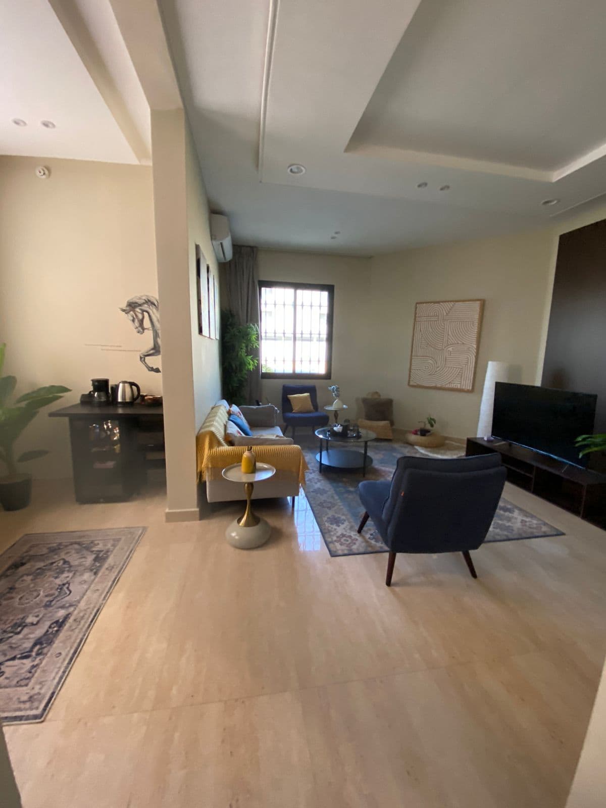 Live in style at this boho-chic 1BR suite in Dhahrat Laban! Ground floor with private vibe, cozy lighting, designer furniture, fast Wi-Fi, smart TV, and a full kitchen. Perfect for professionals or couples wanting a warm, relaxing stay near KSU and key city spots. A boutique hotel feel—without the price tag.