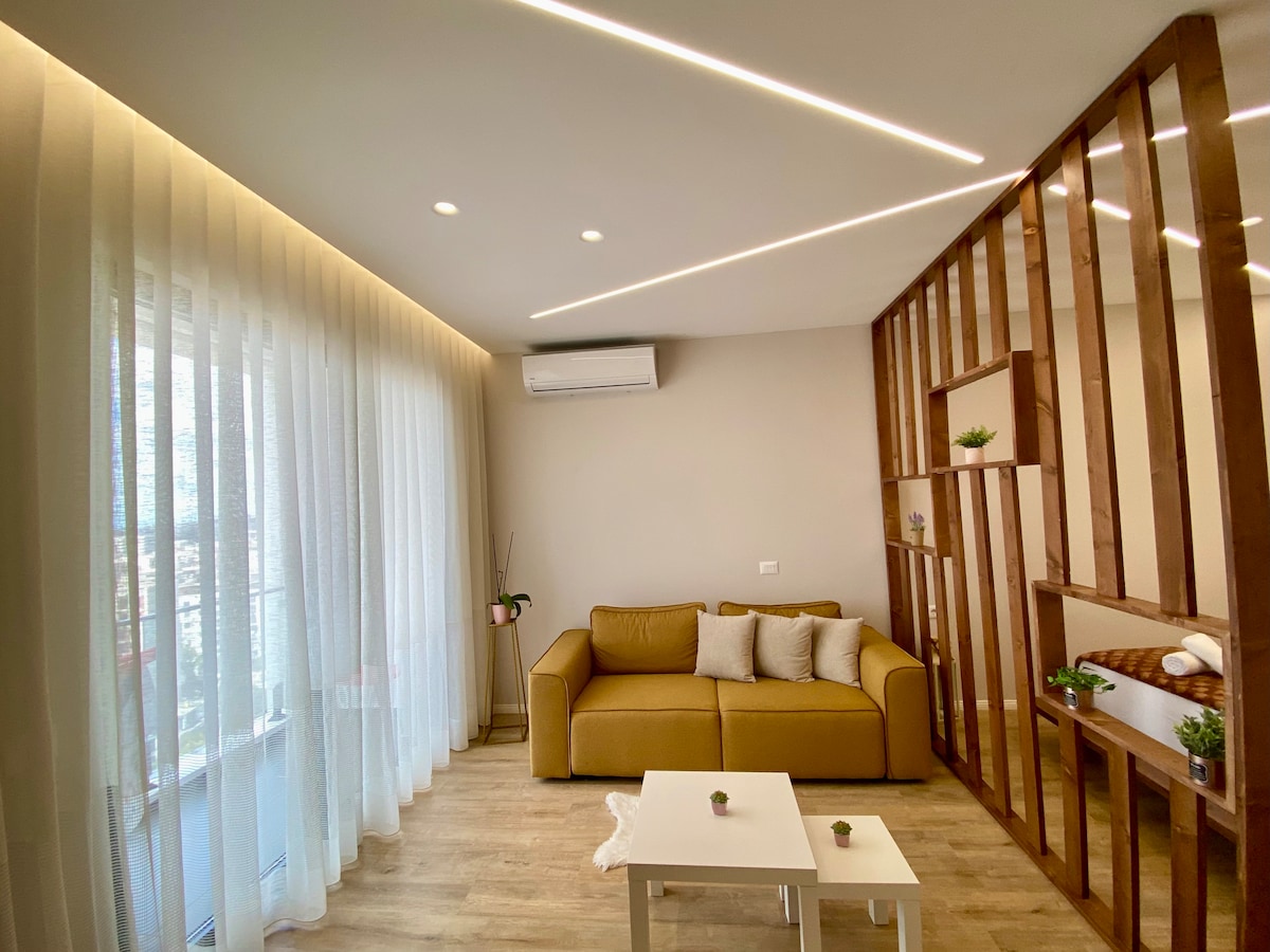 Awesome, cute, & luxurious studio in the center of Tirana that has it all. 100% private, modern and complete amenities, a 30-min ride from the airport and only a 7-min walk away from the city center. Special price for long term bookings, just drop me a message :) This studio apartment will be a perfect home away from home. Groceries, pharmacies, coffee shops, bars, hospitals are within walking distance. Perfect for couples but it can also comfortably host up to 3 people.