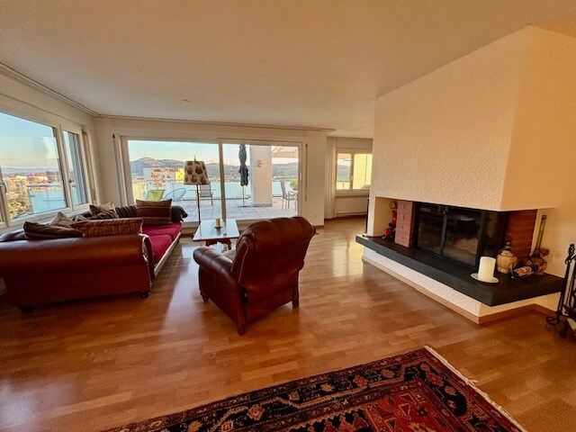 5.5 rooms, 180 square meters, freshly renovated, 2 indoor parking spaces, 2 terraces and 1 balcony (total surface 32 square meters), 2 bathrooms (two showers, one bathtub), fire place, laundry room, storage room, geothermal heating system. 30 seconds walk to the forest, 25 minutes by public transport and 10 minutes by private car to either the main station, lake or riverfront, airport or the nightlife-districts. Bus station, and shopping facilities all within walking distance.
