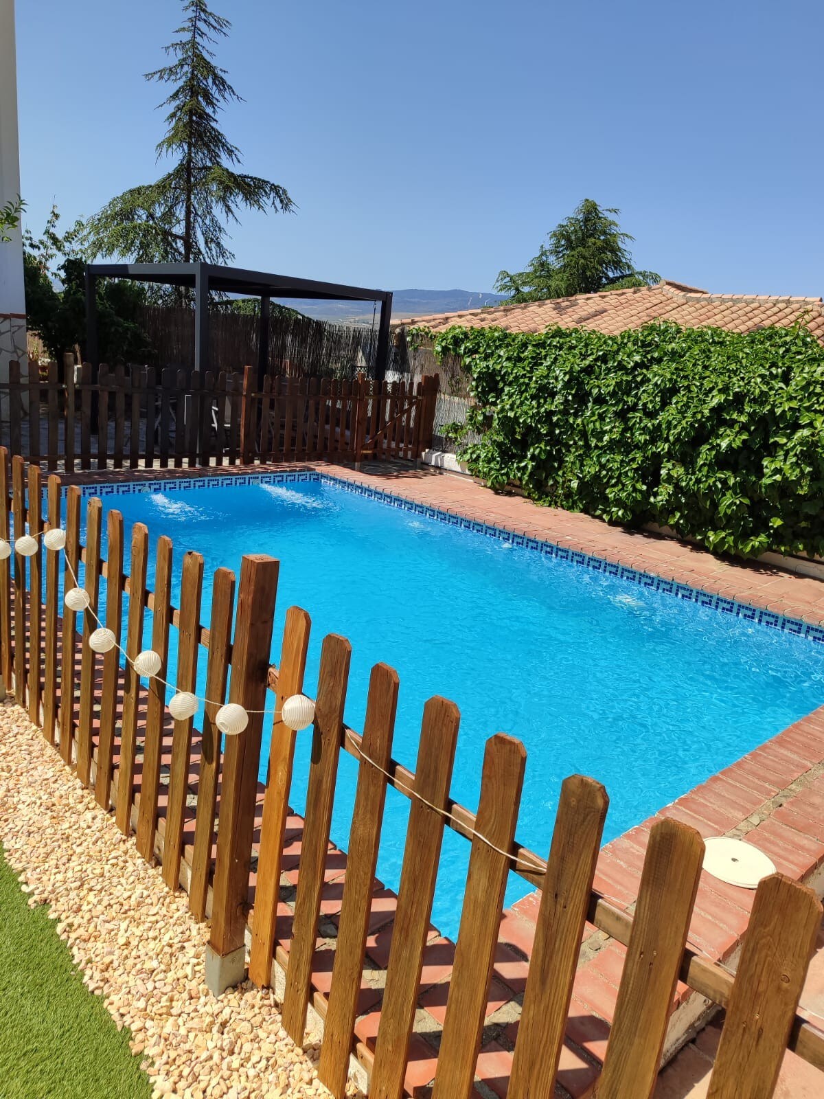 Cozy detached house, nice private patio with garden, large swimming pool and Jacuzzi Perfect for spending a few relaxing days in a quiet place near Granada The house and its patio are located inside a beautiful garden with a large swimming pool Living room, kitchen, bedroom full bathroom Heating and air conditioning Very well connected 10 minutes to downtown Granada 15 minutes to Alhambra Sierra Nevada 25 km 35 km from Costa Tropical Accommodation for 3 people Children free up to 2 years old