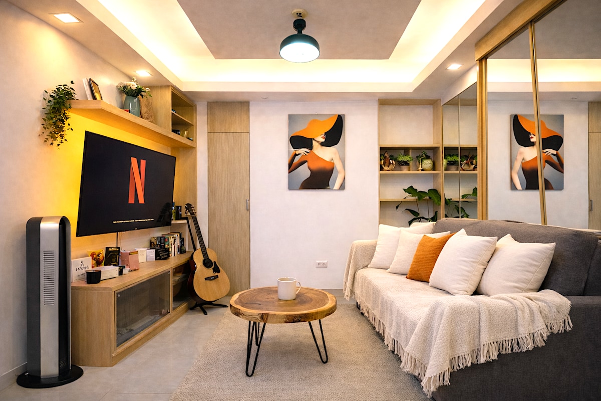 Kamusta! We're Jade and Sheryl, and we'd love to welcome you to our modern Acqua studio. It’s a peaceful spot directly across the Estrella–Pantaleon Bridge from Rockwell's chic cafes, restaurants, and Power Plant Mall. Relax on a queen bed, cook in a fully-equipped kitchen, stream on a 50” smart TV w/ Netflix & Prime, and work or play with fast 400 Mbps Wi-Fi. You’ll also enjoy access to Acqua's refreshing pools and gardens, rooftop gym, convenient shops, and peace of mind with 24/7 security.