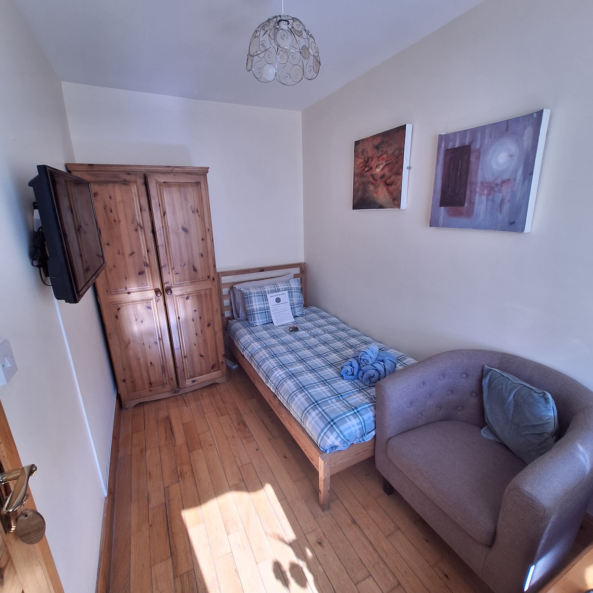 Private accommodation with sitting room and own private entrance. Very peaceful and scenic location, approx. one mile (2 kms) from town centre. Check in time 5pm to 8pm. or from 1pm if requested. Complimentary continental breakfast is provided in your room area..... Orange Juice, Cereals, Natural yogurt, Homemade scones, Butter, Jam, Fresh Milk, Tea /Coffee and drinking water. Ice cubes in Freezer. Fridge/freezer, microwave, kettle, cups etc. in the area.