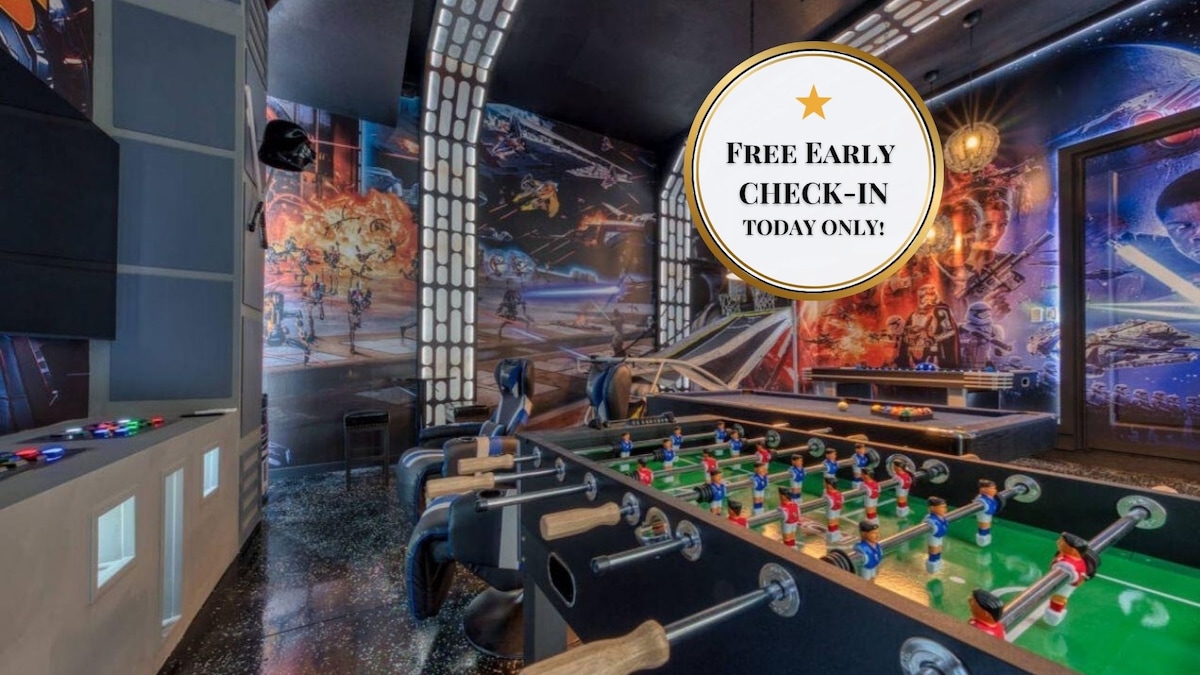 This special place is close to everything, making it easy to plan your visit. • Community: Paradiso Grande • 6 Bedrooms/6 Baths/Sleeps 16 • Disney - 10 miles • SeaWorld - 1.5 miles • ICON PARK - 4 miles • Convention Center - 3 miles • Universal - 7 miles • Exercise Equipment at the house • Fully Equipped Kitchen • Game Room with Arcade with 7500 Games, Pinball, Air Hockey • PRIVATE $35,000 HOME THEATER with 133" Screen and shakers on the seats • Business Grade Internet • Sauna • EV CHARGER