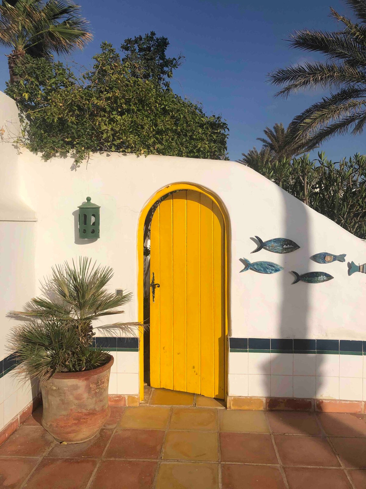 Our small house in a typical Djerbian style is located 60 meters from the beach. Ideal for a couple with a child, it has a double bedroom, a living room with two benches, an equipped kitchen, bathroom with shower and toilet. This small cocoon of tranquility has a shaded terrace and its private garden. Close to shops, hotel amenities (beaches, swimming pools, bars, restaurants, SPA, and massages) and behind the Djerba Casino