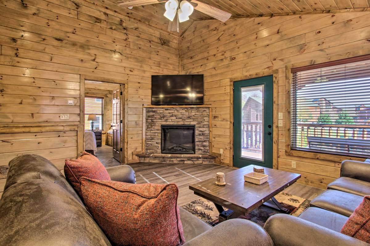 -1 mile to Parkway, 2 miles to The Island, 3 miles to Dollywood, 7 miles to Gatlinburg -High-speed Wi-Fi -Hot Tub -2 Resort Pools -King Bed -Queen Sofa Bed Sleeper -55" Smart TV in Living Room, 43" Smart TV in Bedroom -Natural Gas BBQ Grill -Complimentary Starter Set of Coffee, Shampoo, Conditioner, & Body Wash -Parking for 1 vehicle. Note: The parking spot is on slight incline in front of the cabin. Additional parking available in main resort parking lot