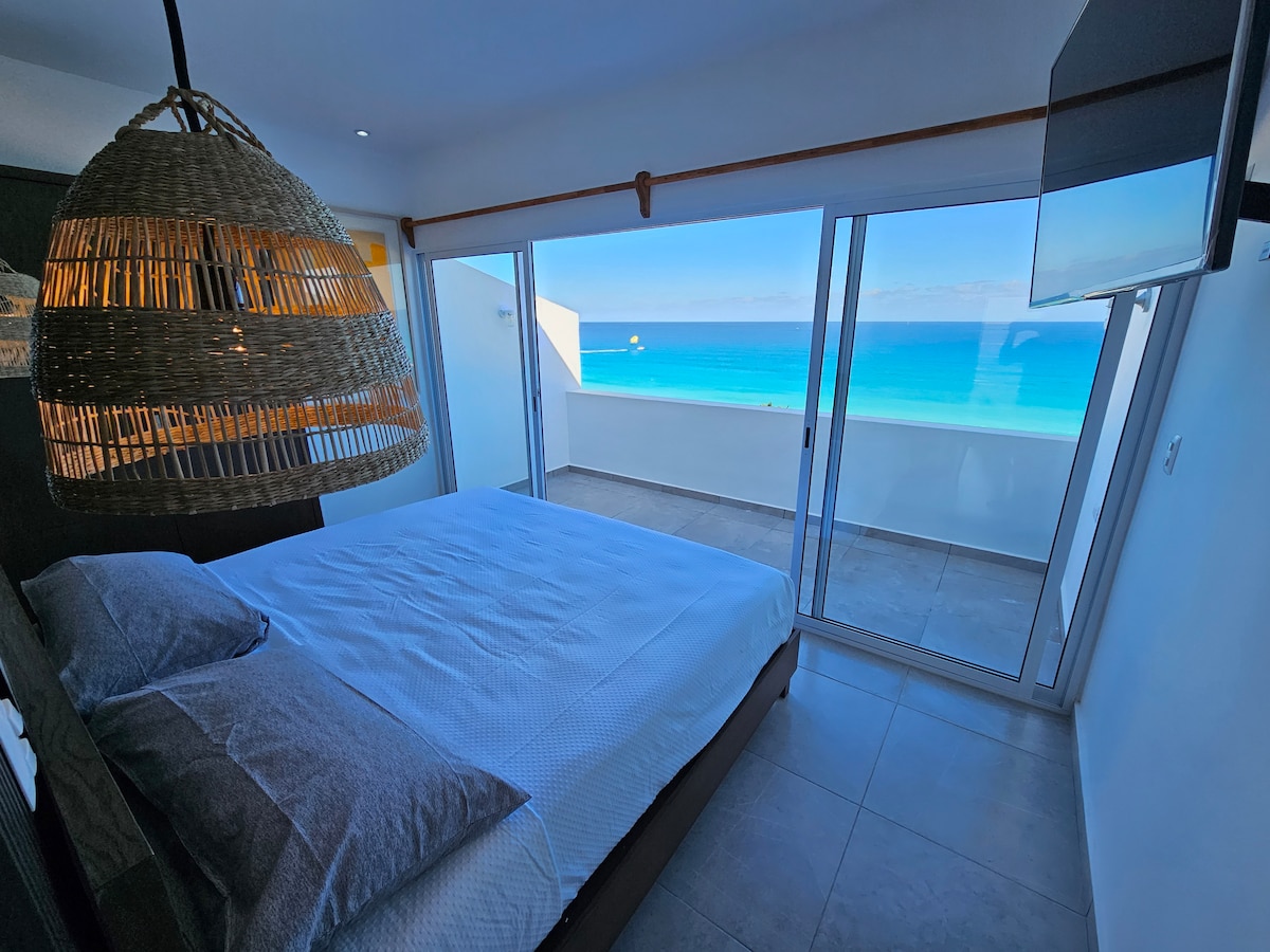 Relax in this apartment in Cancunâs Hotel Zone, just a 5-minute walk to the beach and steps from the bus stop. This space offers everything you need: â Fully equipped kitchen â Air conditioning in every room â Private bathroom with fresh towels and essentials â King-size bed + sofa bed (sleeps 4) Head up to the rooftop to enjoy incredible sunsets over the lagoon â a true hidden gem! Ideal for couples or anyone looking to enjoy the best of Cancun with comfort and convenience.