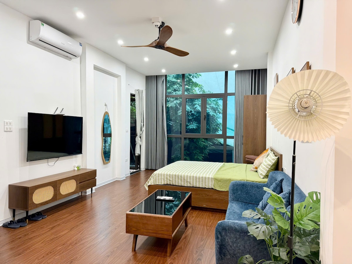 Super beautiful place at Tay Ho: ♥ Area: 70m2 have alots of natural light and fresh Air. Big balcony. ♥ Private, quiet and secure place to live. A modern, beautiful room perfect for a couple or single. ♥ Living room and kitchen. Private bathroom with standing bathtub and heater. Separate 1 bedroom with 1 double bed ♥ Internet TV 50', a private refrigerator, a hair dryer, an induction hob, a microwave oven, an electric cooker, a high speed kettle, private Wifi.