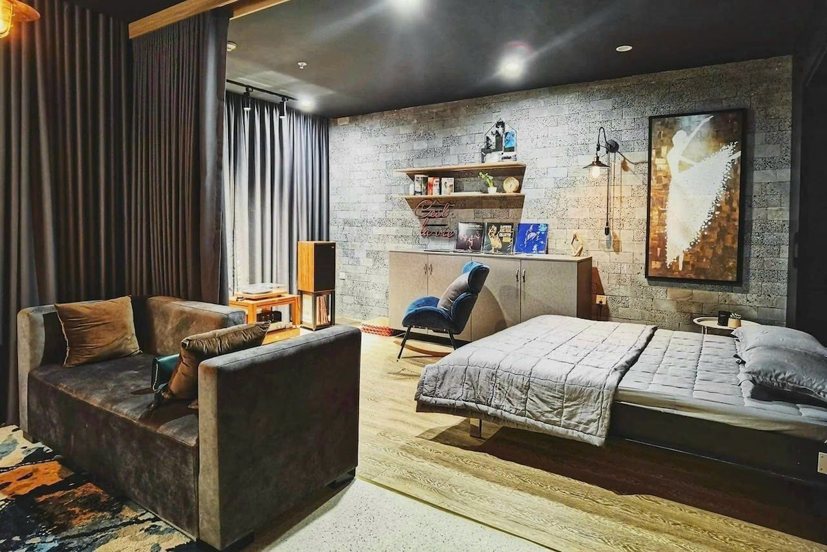 Discover a luxurious private retreat in the heart of the city. Just 3 minutes from Rach Chiec MRT, this 45m² smart home offers privacy, comfort, and style. Enjoy high-end amenities: app-controlled lighting, 85” & 55” 4K TVs with Netflix & Apple TV, immersive Apple HomePod sound, customizable mood lighting, and a 2-meter spa-style soaking tub. Perfect for couples, business travelers, and small families.