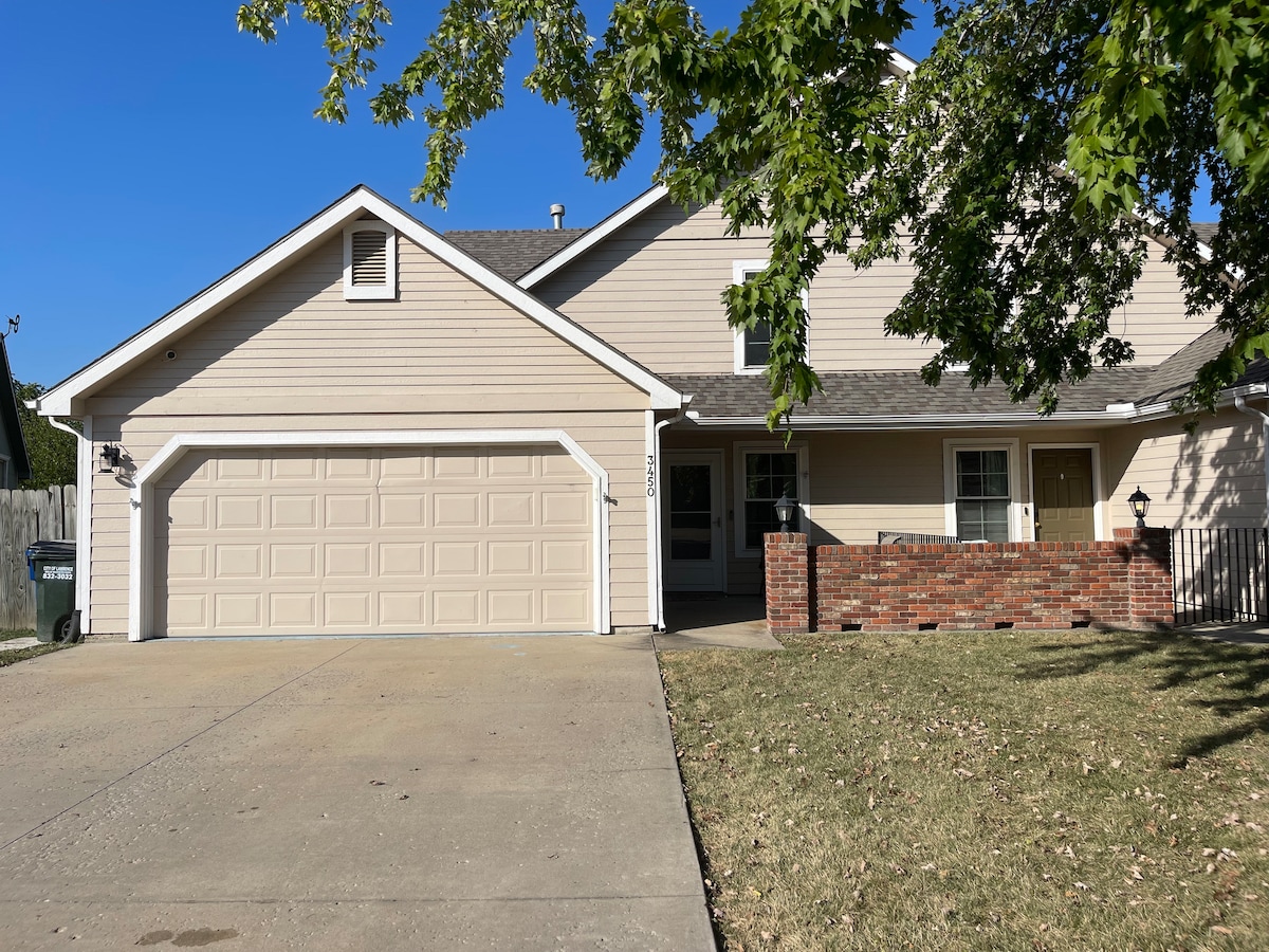 Enjoy ping pong or foosball in the attached garage. Take a nap in the comfy beds or relax on the soft sectional to watch TV. We are located 7 minutes from Walmart, Sprouts, or Dillons and 11 minutes from KU. Many restaurants are located nearby. You can eat at the picnic table in the fenced in back yard, or enjoy a burger made on the electric grill. On chilly evenings you can turn on the gas fireplace to stay extra warm. Four cars can fit in the driveway and there is space on the street too.