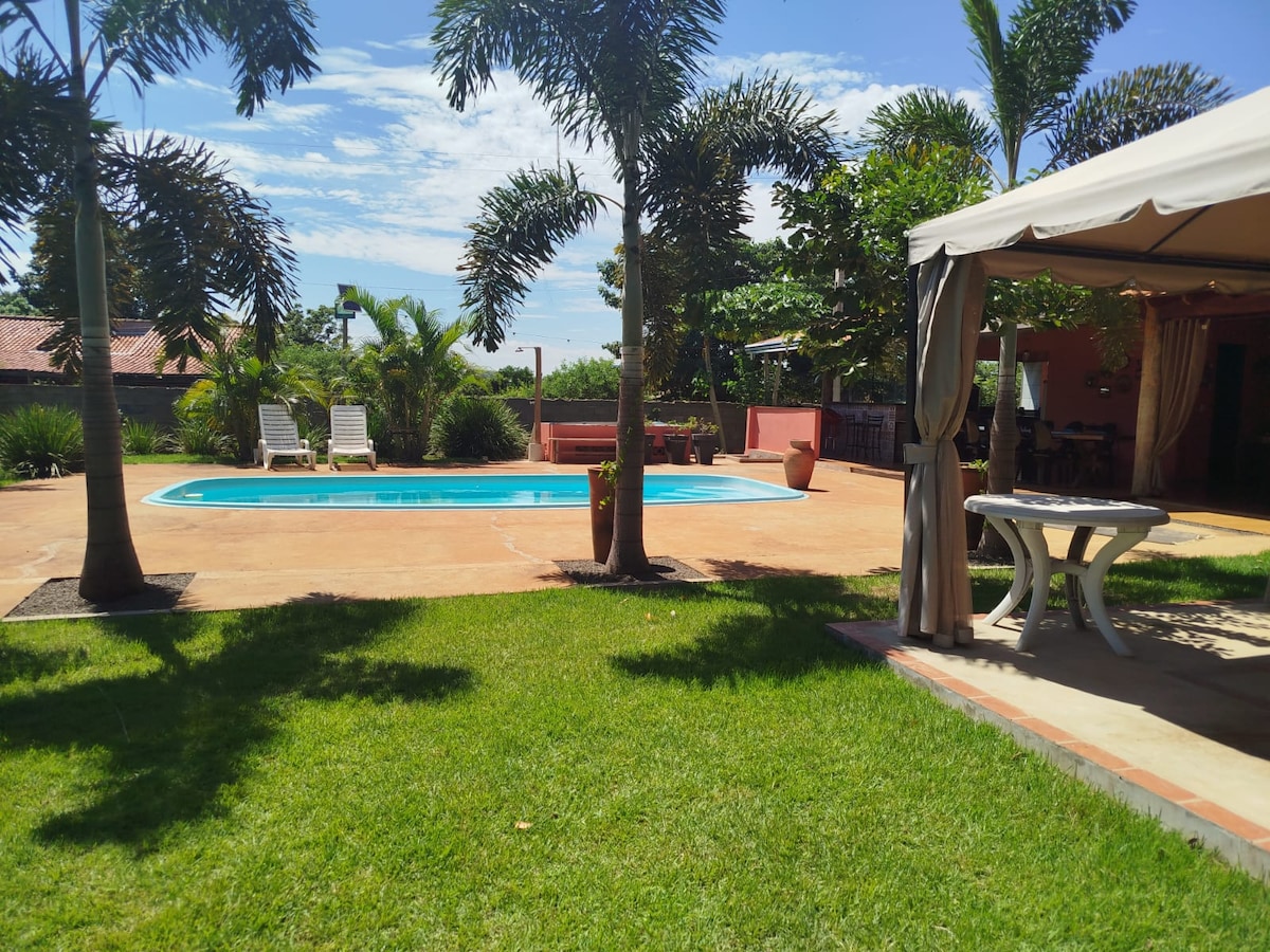 🏡 Recanto Manah is the perfect getaway for rest and leisure! Country house with 3 bedrooms (all with air-conditioning), 4 bathrooms, air-conditioned living room, full kitchen, bedding, swimming pool, barbecue and backyard with fruit trees. Ideal for families and groups seeking comfort and contact with nature. Come and experience unforgettable moments!