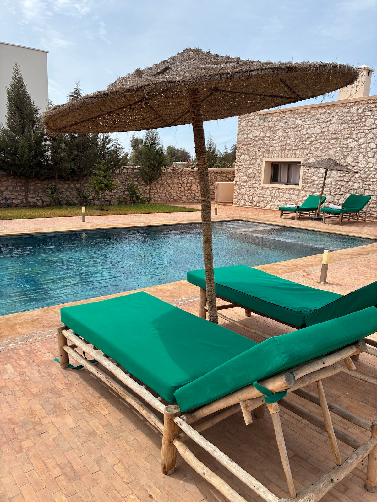Villa de charme sur le Royal Golf du lac de Ouarzazate. Capacité 8 voyageurs, 4 chambres avec salles de bains. Piscine privée, grand jardin arboré et une déco marocaine raffinée faite par un grand architecte l'intérieur Marocain. Calme absolu, confort total et vue panoramique sur les montagnes. Idéal pour familles ou séjours entre amis. À deux pas des plus beaux paysages et lieux emblématiques de la région. Une oasis d’élégance et de sérénité. Réservez votre séjour inoubliable dès maintenant.
