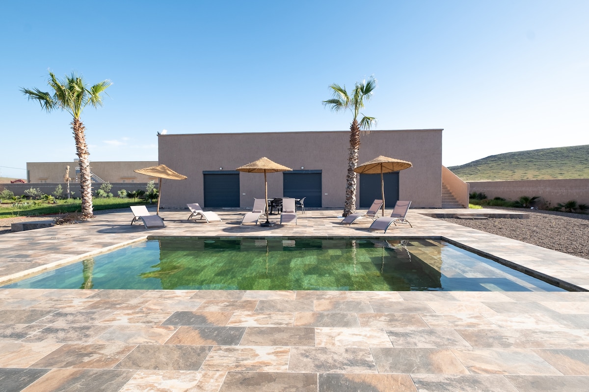 Discover the Kasbah Oasis near Lake Mansour Ed Dahabi, a modern Moroccan haven of peace. 4 bedrooms, 2 bathrooms, a swimming pool and unique works of art await you in this enchanting place. Be captivated by the authenticity and warmth of every corner of this villa. Enjoy the sunset and relax in the pool in the middle of a green oasis. An unforgettable experience in Ouarzazate awaits you here.