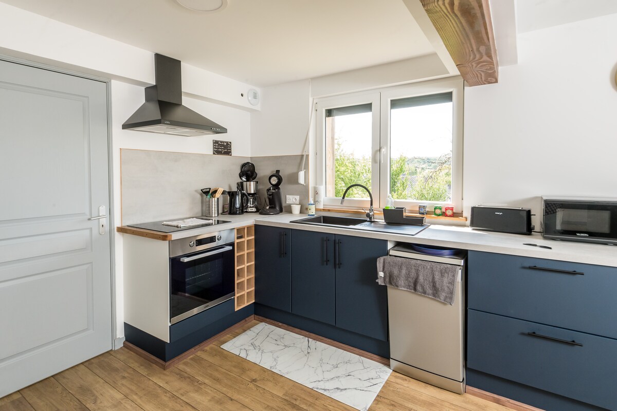 Logement entièrement rénové, cette dépendance au sein de notre corps de ferme conserve le cachet de l'ancien avec poutres apparentes dans une ambiance cosy et chaleureuse. Au cœur d'un village avec toutes commodités : boulangerie, boucherie charcuterie, supérette, pharmacie … Le logement offre de beaux volumes, avec cuisine équipée, 2 chambres, salle de bain avec douche et espace buanderie avec machine à laver. Bel espace extérieur aménagé et partagé en commun avec nos hôtes. Equipements bébé.