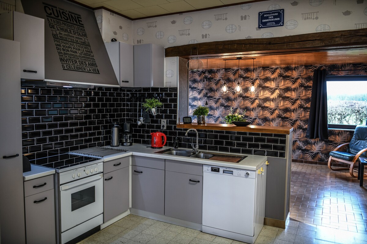 Gite de 100 m². entièrement neuf réalisé dans une grange. Chauffage électrique avec poêle à bois. Cuisine entièrement équipée (lave vaisselle, réfrigérateur, congélateur, four + micro ondes, etc..). Idéal pour le repos et profiter du calme de la nature. Situé en pleine campagne sans aucun vis à vis avec l'extérieur. Propriété à partager avec la propriétaire. coin terrasse privée, barbecue, balançoire, toboggan. WIFI gratuit. Netflix Taxe de séjour en supplément : 1,21 / adulte/jour