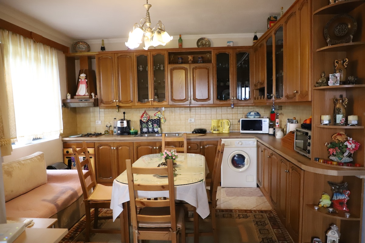 Located in city center and very close to historic neighbourhood attraction of Berat. Its a private quiet place when you can enjoy siting on the terrace with a wonderful view of the old city or in the Garden . The space is very big and bright . Guest can cook in the kitchen and eat the breakfast outside in the sunny days as Berat is known for 300 sunny days in a year . Family friendly property and kinds friendly . All the facilities needed for a weekend or more .