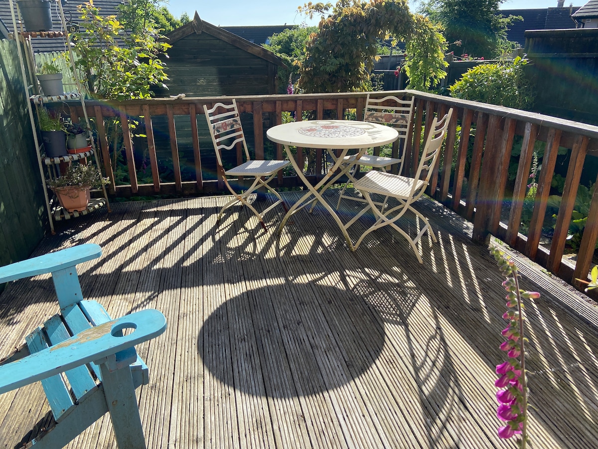 Access to the tree house can be conducted by phone so you don't meet anyone. All contact surfaces are cleaned using dettol wipes and linen is washed at 60 deg. This is a real tree house, fully insulated, 6m off the ground. It faces south with views of the city. It is situated in our garden but screened by trees giving privacy. It consists of a bedroom with a deck at the top level and a bathroom on the level below. Cork city centre is a 5 min. walk. Access to the city is via a STEEP HILL.