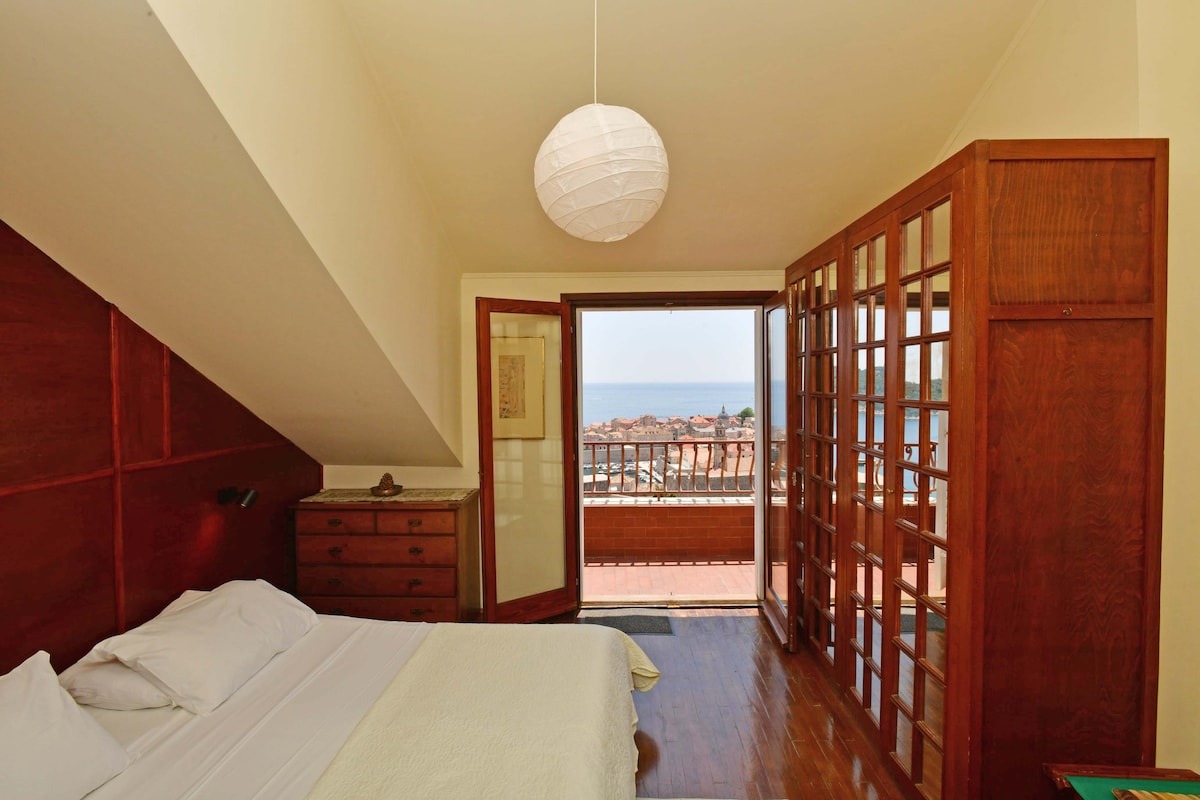 This is really unique property, very spacious and very private; 130m2 house with a small garden. To get there you should walk up 97 stairs,but you want be disappointed when reach the house. Its superb location,just 3 minutes walking distance from Old Town is surpassed only by the spectacular views from its large terrace and balcony. On the ground floor there is large, confortable living room,a full eat-in kitchen,and a bathroom with bath tub.The living room opens onto a large terrace equipped with table and chairs. A wooden staircase leads to the first floor which consists of two bedrooms;master bedroom with ensuite bathroom and balcony,and 1 guest room.Bedroom 1 is with air condition and the king size bed.Bedroom 2 has acces to the balcony,a fen and a queen size bed.There is also a day bed in the living room that can sleep 1guest. .