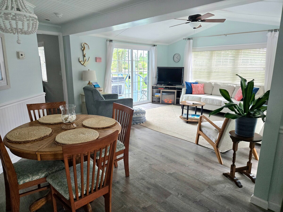 Cozy cottage with full lake view from back deck! 1 bedroom w double bed, comfortable living room, full eat-in kitchen (gas stove) updated bathroom, Roku tv, wifi and large windows to let in the sunshine! Easy walking distance Point Gratiot Park. Also listed by me is nearby Cedar Beach House , a separate- but -adjacent lot with larger home suitable for 6 guests, so you can book both houses together for larger family gatherings Price includes all state and local taxes.