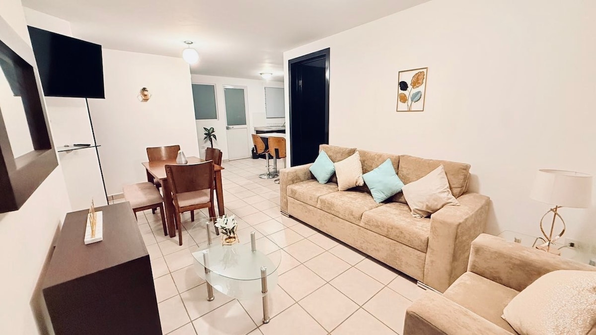 Discover a comfortable and conveniently located space to make the most of your trip. Our second-floor apartment is ideal for tourists looking to rest in a clean, quiet, and functional place after exploring the city. Its strategic location will allow you to move easily and have everything within reach, while enjoying the privacy and calm that only a place like this can offer. Your perfect place to feel at home. We have a queen size bed and a sofa bed