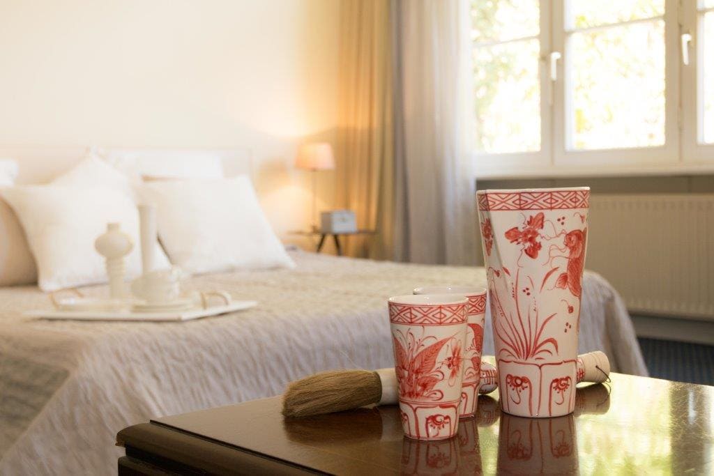 In unserem kleinen, edlen Hotel wurden Historie und Moderne harmonisch miteinander kombiniert. Es befindet sich in der ehemaligen restaurierten Remise der Schlossanlage, die von einem herrlichen Park umgeben ist. Das Hotel besticht durch insgesamt neun modern und stilvoll mit Naturmaterialien in warmen Naturtönen eingerichtete, geräumige und lichtdurchflutete Doppelzimmer. Zwei der Doppelzimmer können zu einem Familienzimmer verbunden werden.