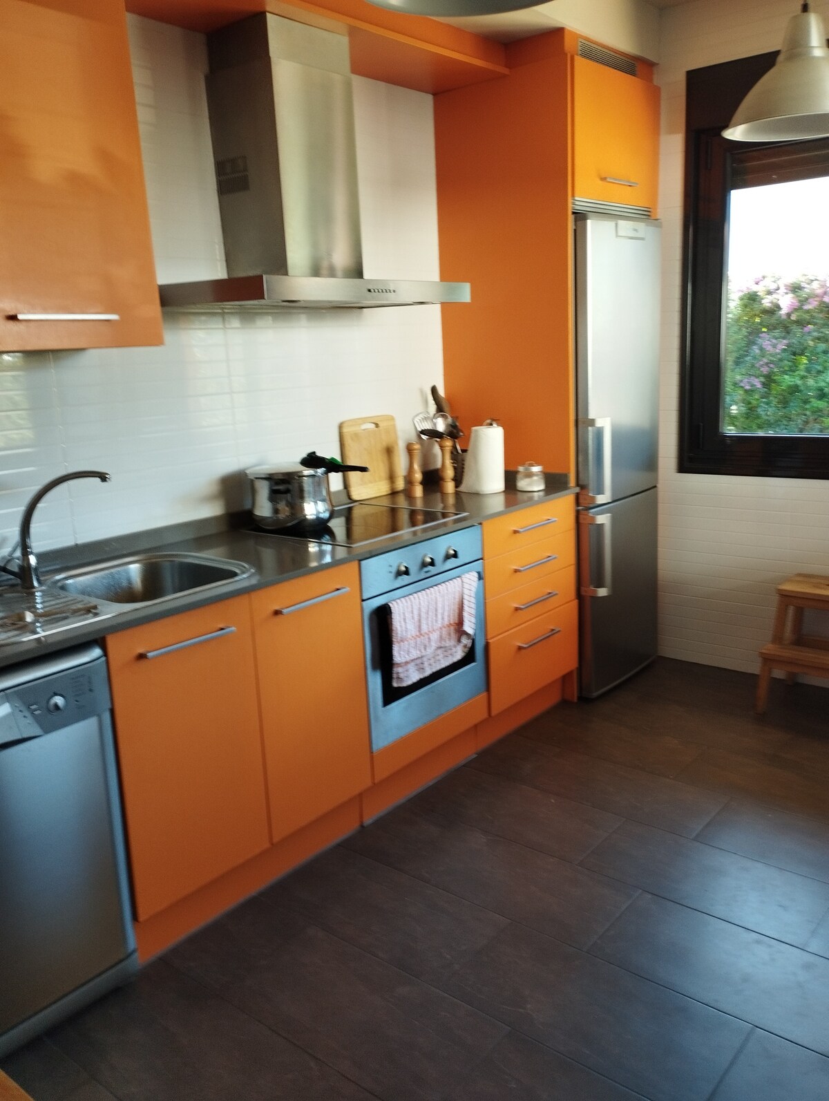 A 75 m2 house distributed over three levels and featuring a separate kitchen, a dining room, a living room with a fireplace, and two bedrooms with an en-suite bathroom. It is an old building that has been completely renovated and equipped with a ceramic stovetop, oven, microwave, washing machine, dishwasher, refrigerator, small appliances, dishes, bed linens, and towels. It has a closed patio with access from the kitchen to relax or eat outside and a balcony overlooking the street.