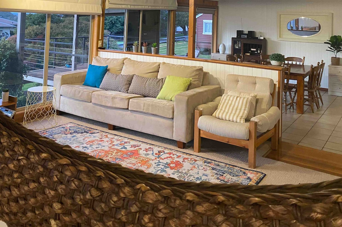 The unit is a renovated wing of our home with a private entrance, lounge/dining, 2 carpeted bedrooms with a Q bed & 2 K singles, toilet & bathroom & very well-equipped kitchenette. It is quiet, fully self-contained and private. We only accommodate 4 people and are located 3k away from the town centre. Our accommodation is not a party house. We do not accommodate children under 12 including babies or dogs. STRICTLY NO COOKING CRABS OR GUTTING/CLEANING OF FISH IN THE HOUSE.