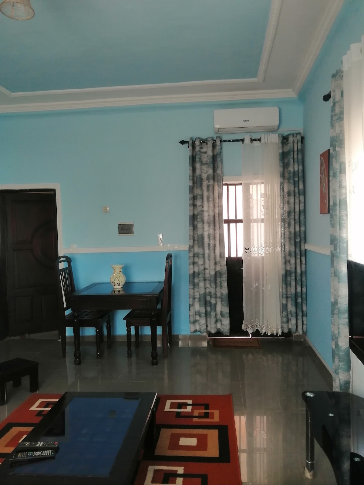 Hello, thanks for your interest in our furnished apartment. This apartment guarantees you luxury, calm and above all permanent light and water thanks to our solar panels and our Water Tower! etc... Located in the Monou 2 district, it is 5 min by car or motorcycle from the city center. We have thought of more than necessary to make your stay more than pleasant.
