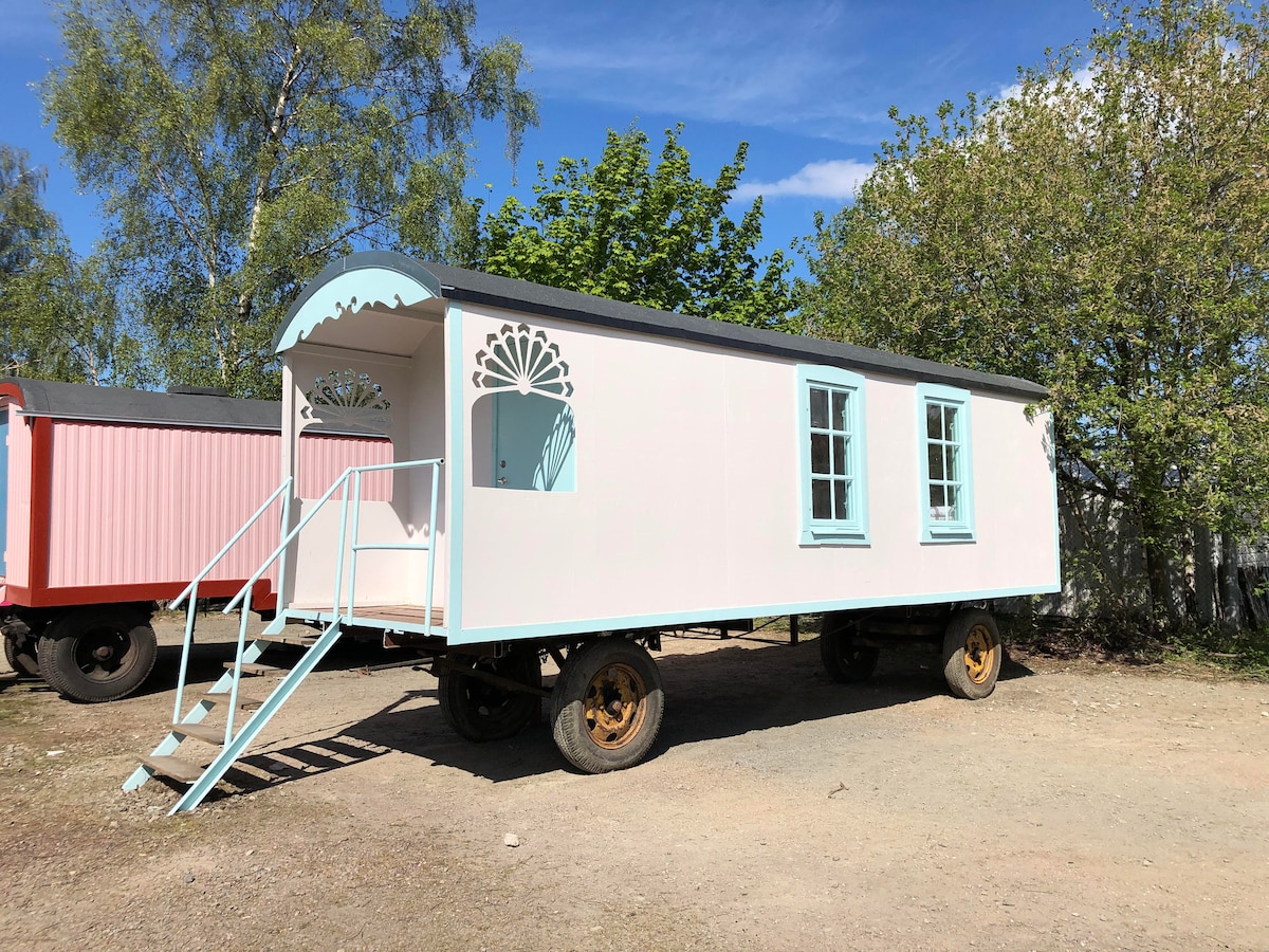 Do środka lasu - Puszczy Noteckiej sprowadziliśmy dwa wagony kolejowe. Nazwaliśmy je Turkus i Magenta. Turkus powstał w 1939 roku. Od roku 1984 służył jako wagon techniczny i do 2022 roku jeździł po torach. Magenta powstał w roku 1972 i również do roku 2022 jeździł jako wagon techniczny. Piękne stare wagony odnowiliśmy i przerobiliśmy na nietuzinkowe, rzadkie miejsca noclegowe. Zachowaliśmy łukowate sufity, stalowy szkielet otoczyliśmy drewnem i dodaliśmy nowych barw.